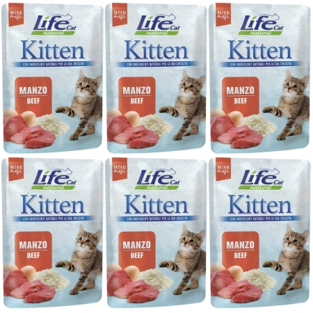 Life Cat Kitten Karma dla Kota Juniora Wołowina 6x70g karma mokra dla kociąt.