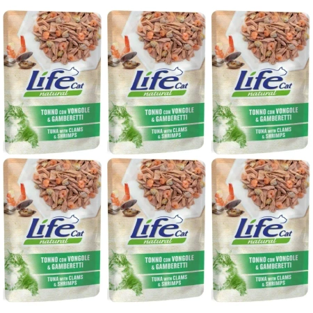 6x Life Cat Saszetka 70g Tuńczyk Małże Krewetki Karma dla KotaCena: 5,60 zł / szt.