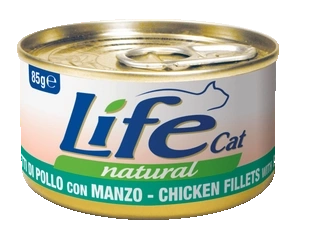 Life Cat Puszka 85g Kurczak Wołowina Filet Karma dla Kota to karma uzupełniająca dla kotów dorosłych.