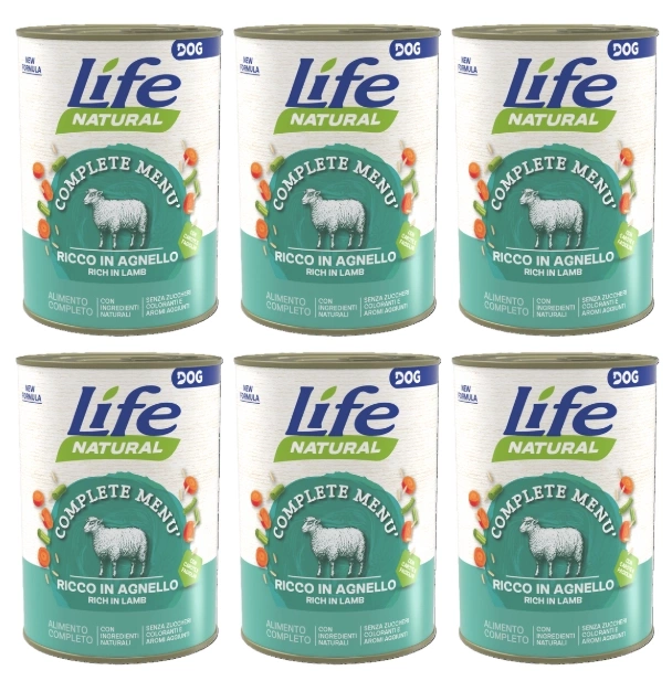 - Life Dog Mokra Karma Dla Psa Jagnięcina Ryż 6x400g to zestaw 6 puszek po 400g kompletnej mokrej karmy dla psów z jagnięciną z ryżem.