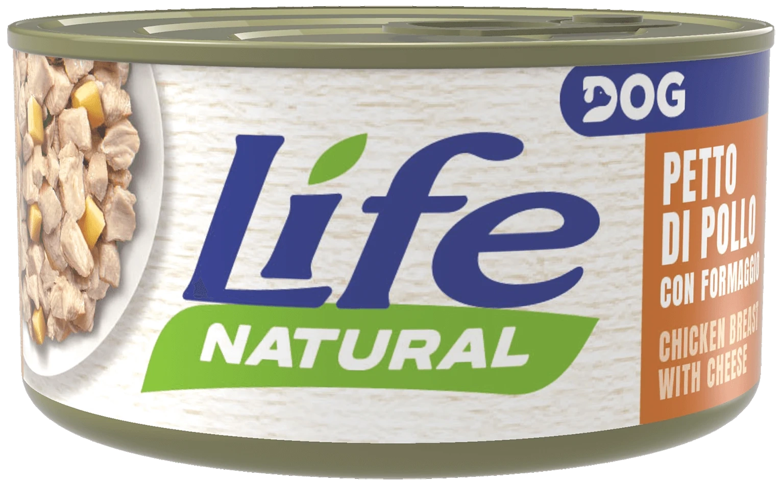 Karma mokra dla psa Life Dog Naturel z delikatnym mięsem kurczaka z serem w warzywnym sosie, jest polecana dla psów o wrażliwym układzie trawiennym.