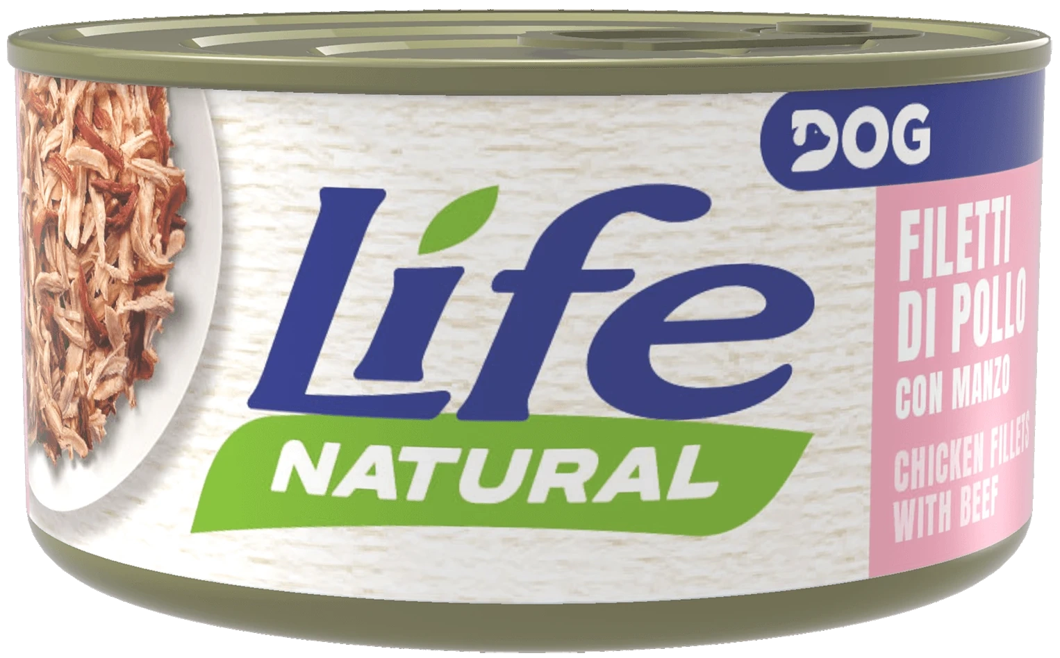 Karma mokra dla psa Life Dog Naturel z delikatnym mięsem wołowym oraz kurczakiem w warzywnym sosie, jest polecana dla psów o wrażliwym układzie trawiennym.