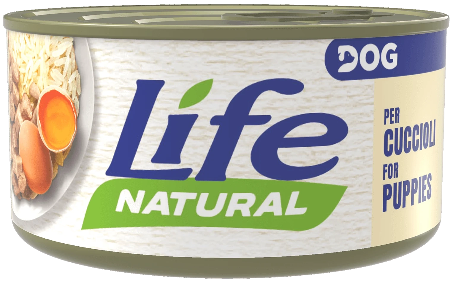 Karma mokra dla szczeniąt Life Dog Naturel z kurczakiem i jajami w warzywnym sosie, jest polecana dla psów o wrażliwym układzie trawiennym.