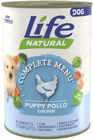 Karma Life Dog z kurczakiem i warzywami nie zawiera konserwantów, barwników ani aromatów.
