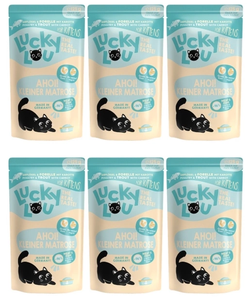 6x Lucky Lou Karma Dla Kociąt Drób Pstrąg 125gCena: 7,14 zł / szt.