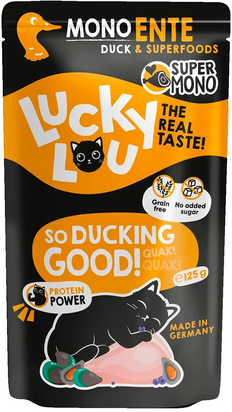 Lucky Lou SuperMono Karma Dla Kota Kaczka 125g to pełnoporcjowa karma dla kota dorosłego.