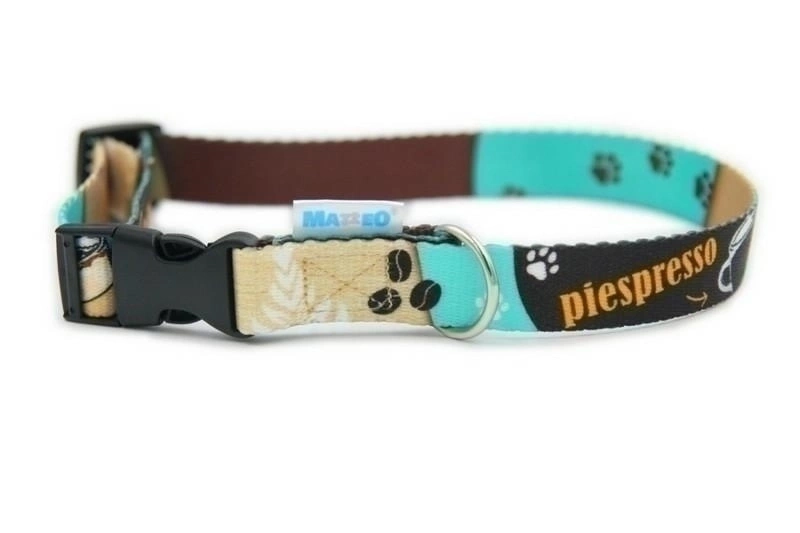 - Matteo Obroża Taśmowa dla Psa Piespresso 15mm 24-40cm to urocza obroża z kawowym motywem.