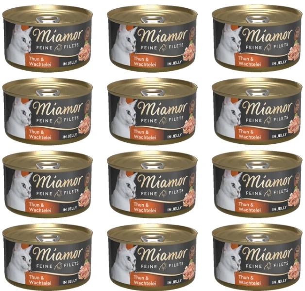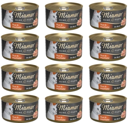 - Miamor Feine Filets Karma Dla Kota Tuńczyk Jaja 12x100g to bezzbożowe danie z aromatycznym tuńczykiem i przepiórczymi jajkami dla Twojego mruczka.
