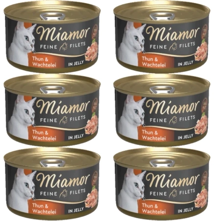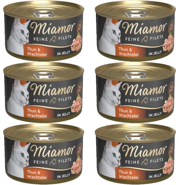 - Miamor Feine Filets Karma Dla Kota Tuńczyk Jaja 6x100g to bezzbożowe danie z aromatycznym tuńczykiem i przepiórczymi jajkami dla Twojego mruczka.