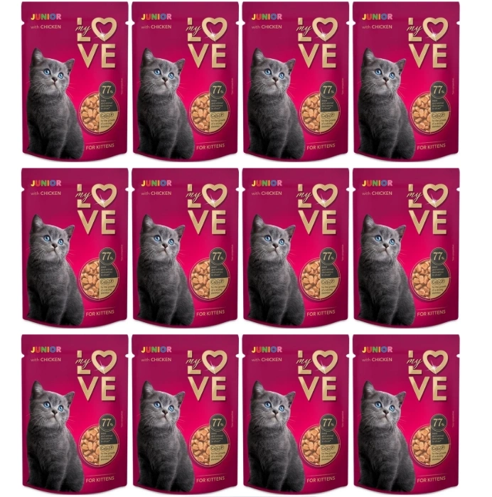 My Love Karma Mokra dla Kociąt Kurczak Sos 12x85g to kompletna karma dla kotów dorosłych.