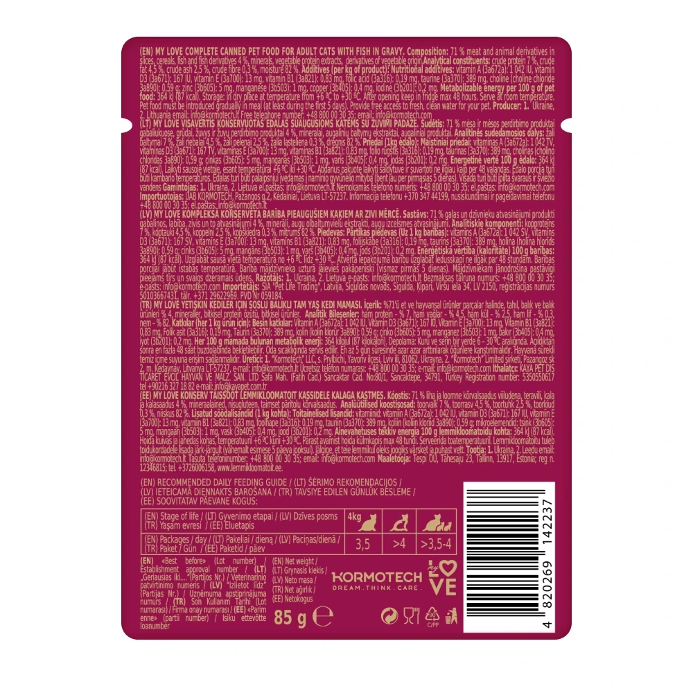 My Love Karma Mokra dla Kota Ryby w Sosie 85g to kompletna karma dla kotów dorosłych.