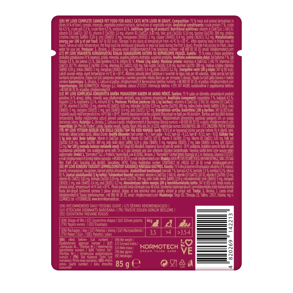 My Love Karma Mokra dla Kota Wątróbka w Sosie 85g to kompletna karma dla kotów dorosłych.