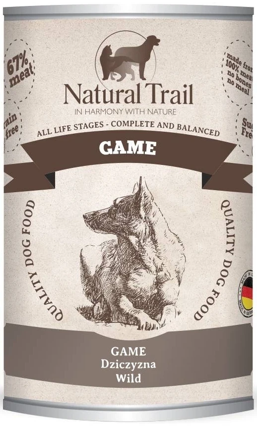 Karma mokra dla psów Natural Trail to pożywny posiłek dla Twojego czworonoga, ze szlachetną dziczyzną - jeleniem i sarną.