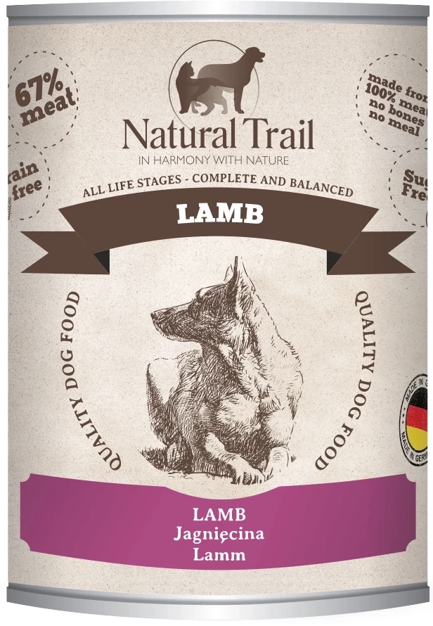 Natural Trail Karma Monoproteinowa dla Psa Jagnięcina Puszka 800g to pełnoporcjowa karma dla psów dorosłych.