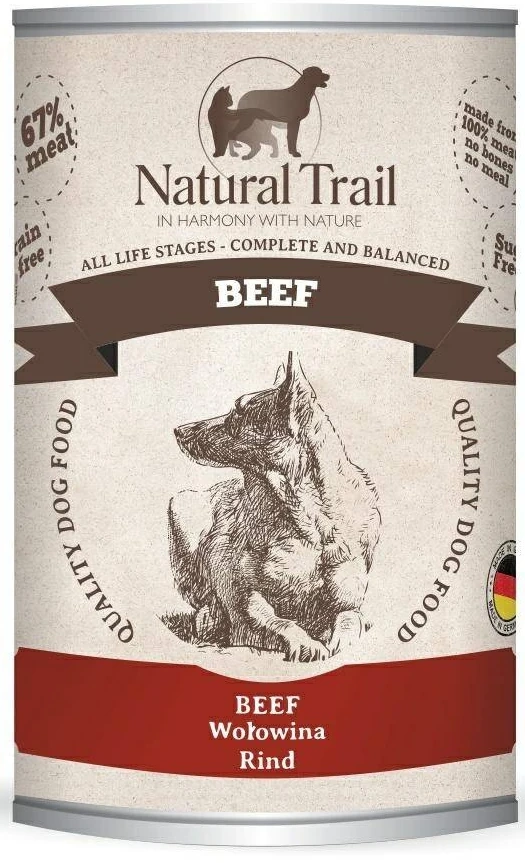 - Natural Trail Karma Monoproteinowa dla Psa Wołowina Puszka 400g to pożywna karma dla Twojego pupila. Jest to karma monobiałkowa, zwana monoprotein, czyli z jednym źródłem białka zwierzęcego.