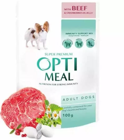 Optimeal Karma Mokra dla Psa Wołowina Żurawina 100g Optimeal Karma Mokra dla Psa Wołowina Żurawina w Galaretce 100g pełnowartościowa mokra karma dla psów dorosłych. Karma wspierająca odporność.