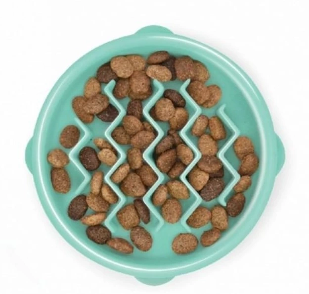 Miseczka dla psa i kota posiada zakamarki, w które "chowa" się jedzonko. Dzięki temu zwierzak musi jeść wolniej, z większą uwagą. Szybkie pochłanianie pokarmu wiąże się z niestrawnościami i słabszym uczuciem sytości po posiłku.