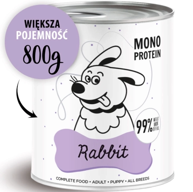 Mokra karma dla psa Paka Zwierzaka PEPE Rabbit to monoproteinowa formuła, która jest zbilansowanym posiłkiem dla psiaków w każdym wieku.