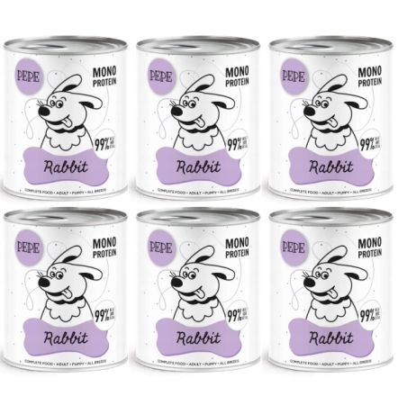 Paka Zwierzaka Karma Dla Psa PEPE Królik 6x800g