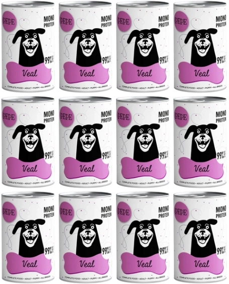 Paka Zwierzaka PEPE Mokra Karma dla Psa Cielęcina 12x400g to pełnoporcjowa karma dla psów na każdym etapie życia.