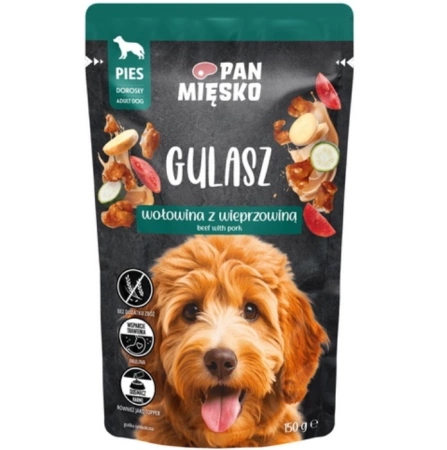 Pan Mięsko Karma Dla Psa Gulasz Wołowo-Wieprzowy 150g to kompletna karma dla psa dorosłego.