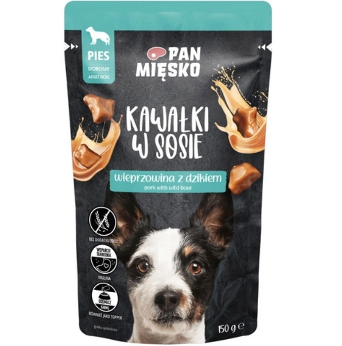 Pan Mięsko Mokra Karma Dla Psa Wieprzowina Dzik Sos 150g to kompletna karma dla psa dorosłego.