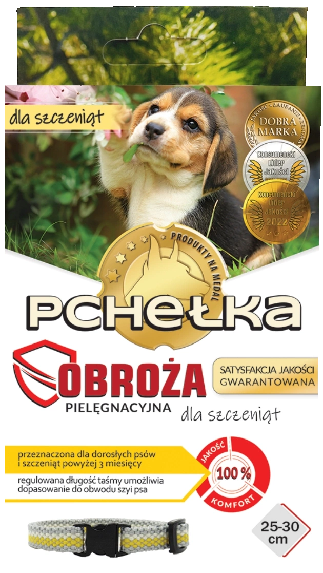 Pchełka Obroża dla Szczeniąt Pielęgnacyjna 25-30cm jest przeznaczona dla szczeniąt od 3 miesiąca życia.