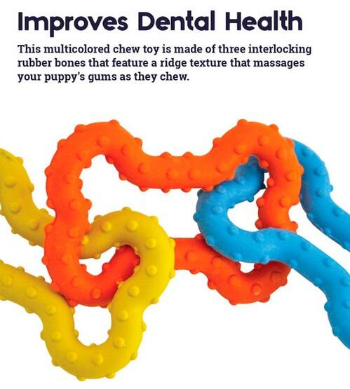 Wykonane z nietoksycznej gumy kosteczki zapewnią małym psiakom wiele chwil radości.