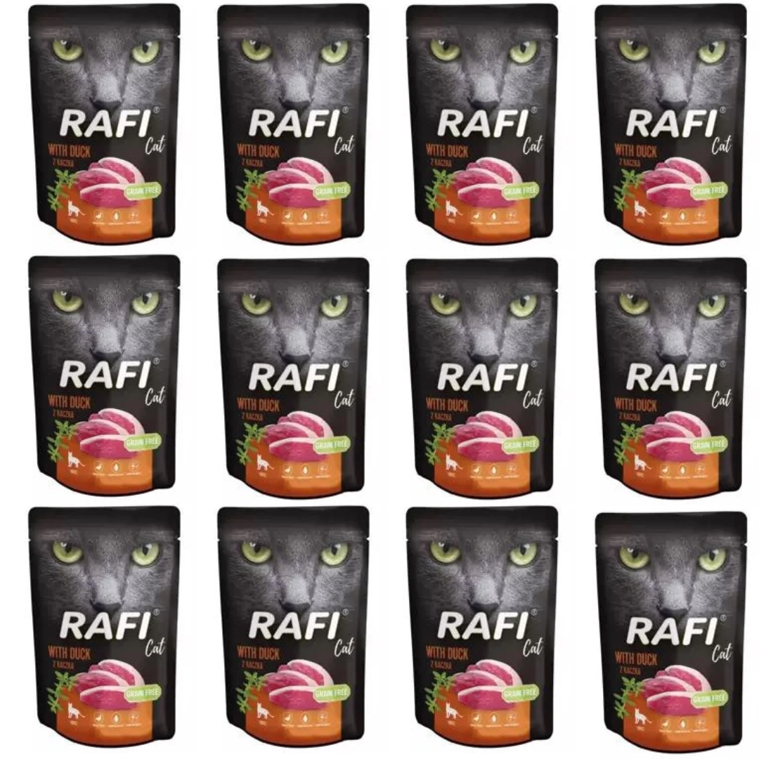 • Rafi Karma Dla Kota Kaczka Saszetka 12x100g to zestaw pysznej propozycji karmy mokrej dla Twojego mruczka.