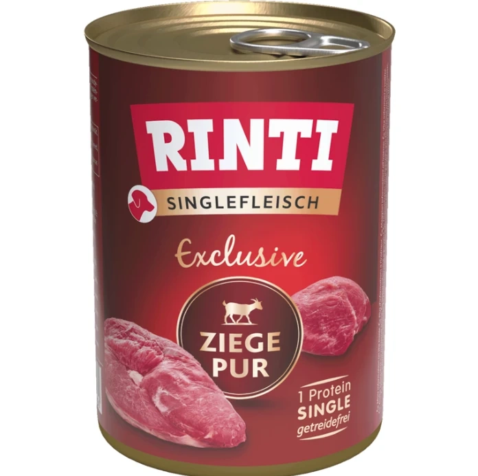 Rinti Single Meat Exclusive gwarantuje 100% mięsa koziego (mięsa i podrobów), co czyni ją idealną dla psów wrażliwych, z alergiami pokarmowymi lub nietolerancją pokarmową.