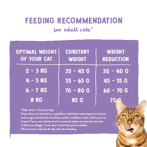 Receptura karmy jest bez zbóż*, co czyni ją idealną dla kotów wrażliwych, a lekkostrawne ziemniaki stanowią doskonały substytut.