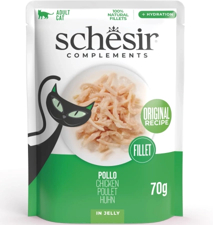Schesir in Jelly Karma Dla Kota Kurczak w Galaretce 70g to uzupełniająca karma dla dorosłych kotów z kurczakiem.