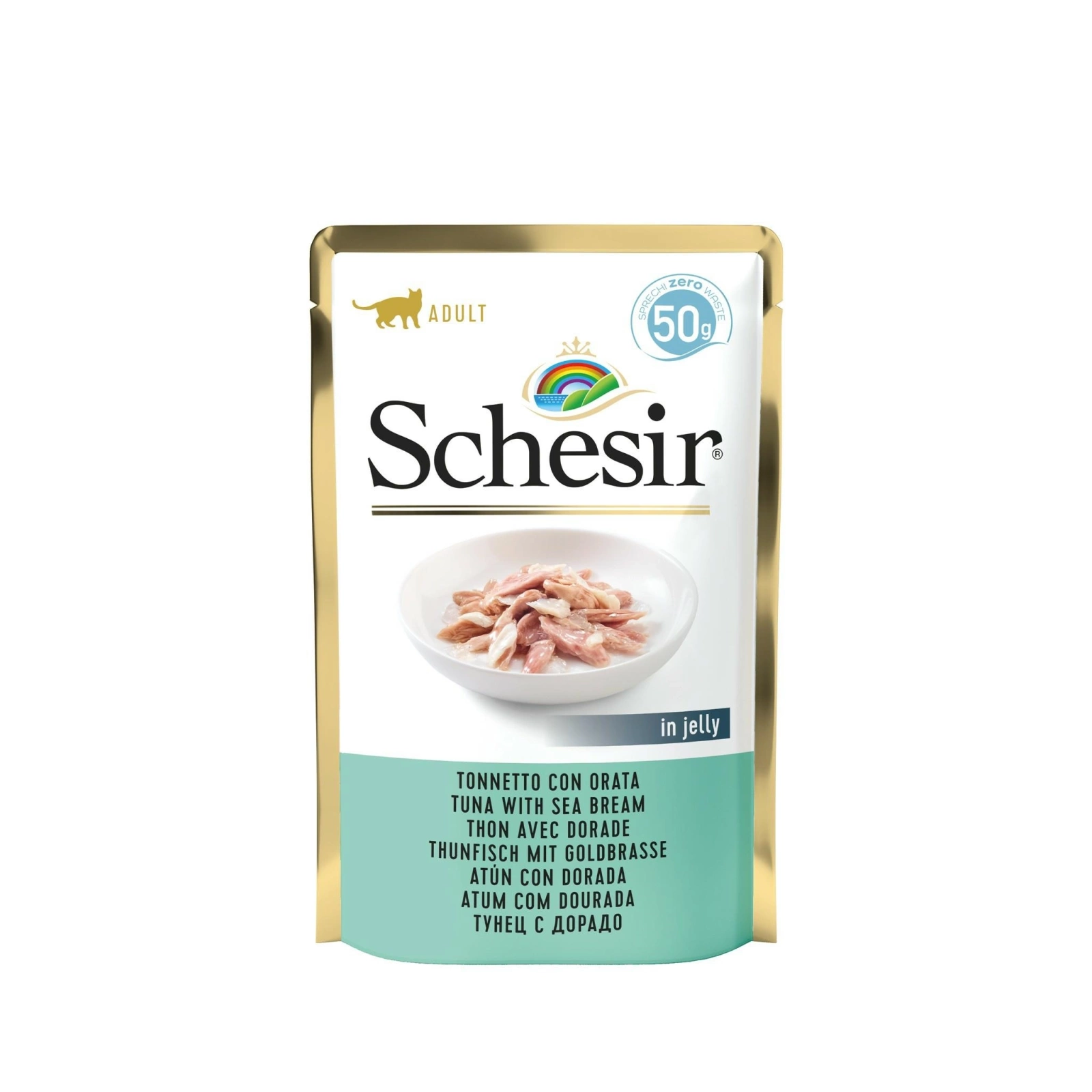 - Schesir Karma Mokra dla Kota Tuńczyk Dorada w Galaretce to pyszne rybne połączenie zamknięte w saszetce.