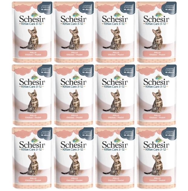 - Schesir Kitten Karma dla Kociąt Kurczak W Galaretce 12x85g to naturalna mięsna karma dla kociąt.