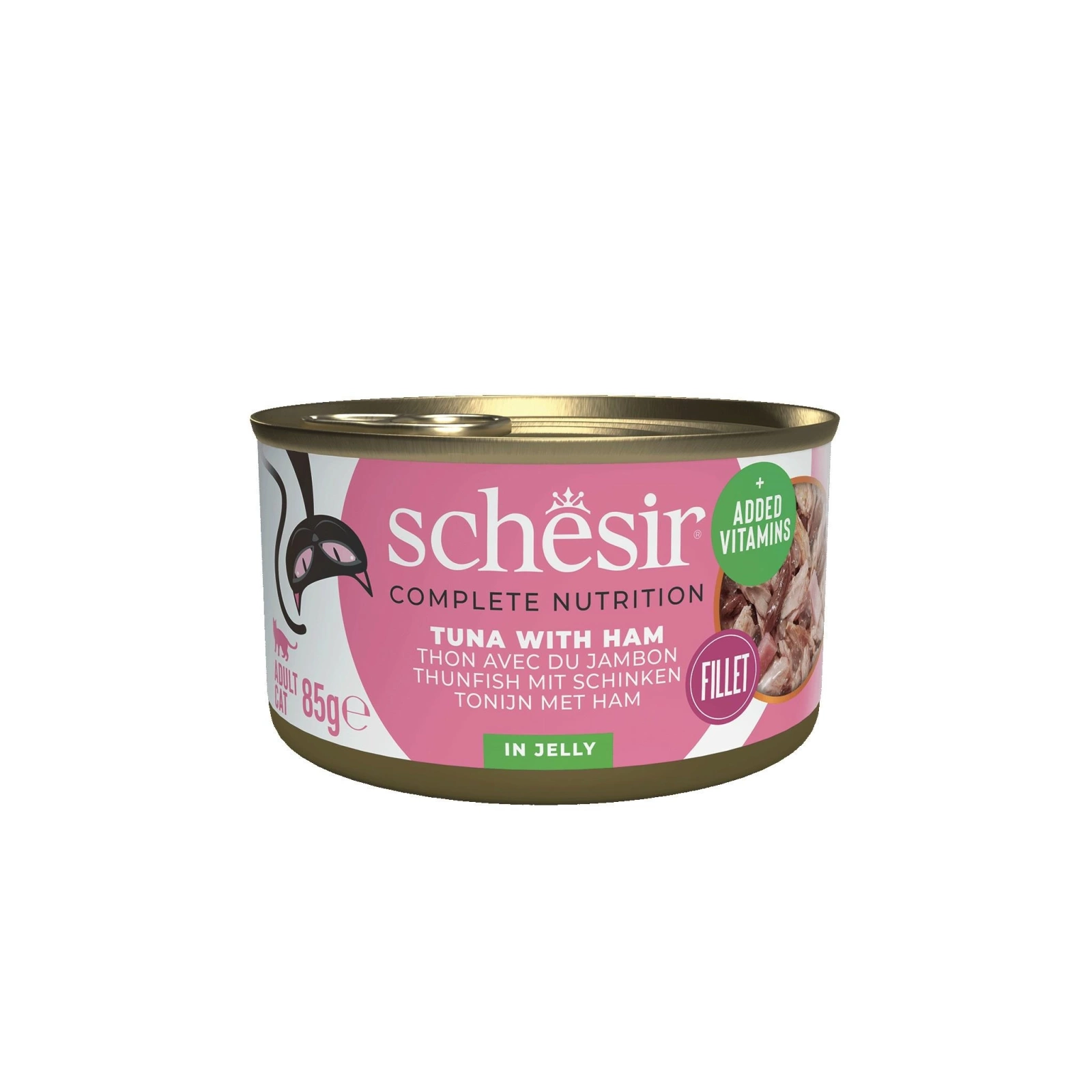 Schesir Karma Mokra dla Kota Tuńczyk Szynka w Galaretce 85g to najwyższej jakości karma dla dorosłych kotów wykonana w 100% z naturalnych składników, bez dodatku barwników i konserwantów. Staranny dobór najlepszych części ryb i mięsa, gotowany na parze i ręcznie przetwarzany.