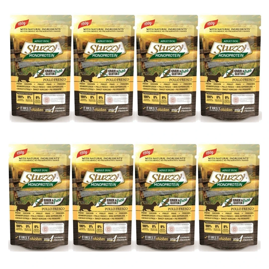 Stuzzy Monoprotein Karma dla Psa Kurczak Saszetka 8x150g to karma pełnoporcjowa dla psów dorosłych.