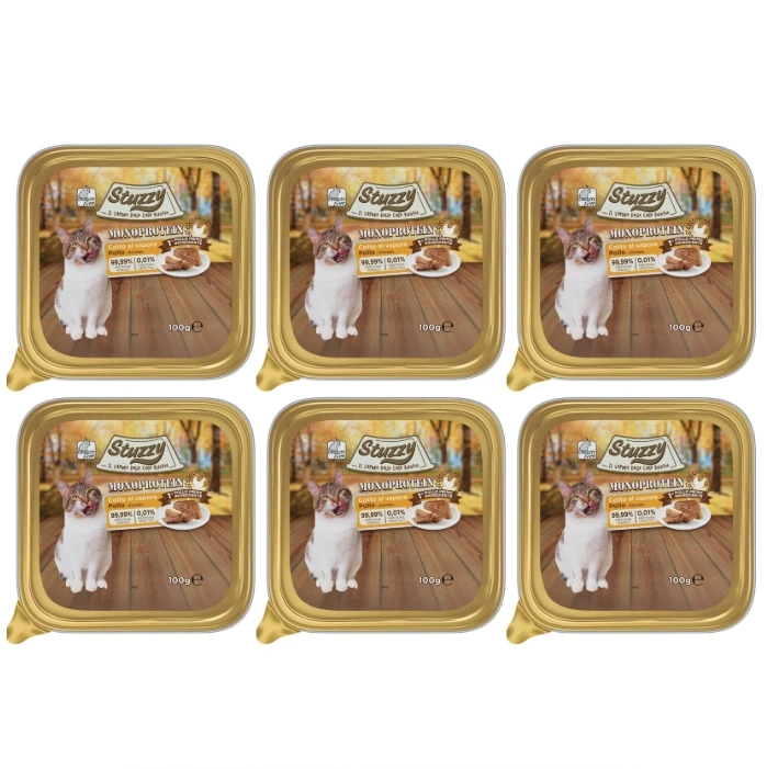 Stuzzy Monoprotein Karma Dla Kota Kurczak Tacka 6x100g to pełnoporcjowa karma dla kota dorosłego.