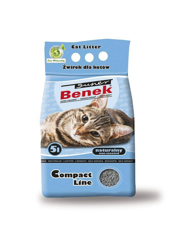 Żwirek o naturalnym zapachu glinki adresowany dla wszystkich kotów. Żwirki higieniczne Compact charakteryzują się drobnym uziarnieniem (0,5-2 mm). Precyzyjnie dobrana frakcja oraz zastosowana technologia produkcji zapewniają doskonałą wydajność żwirków. Wyroby bardzo dobrze się zbryla tworząc foremne, małe i płaskie grudki. Wysoka chłonność umożliwia długą eksploatację produktu.