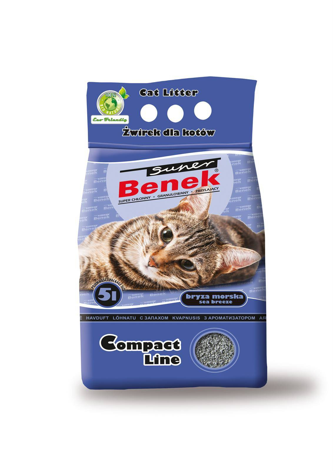 Żwirek z morską kompozycją zapachową o działaniu relaksującym. Żwirki higieniczne Compact charakteryzują się drobnym uziarnieniem (0,5-2 mm). Precyzyjnie dobrana frakcja oraz zastosowana technologia produkcji zapewniają doskonałą wydajność żwirków. Wyroby bardzo dobrze się zbryla tworząc foremne, małe i płaskie grudki. Wysoka chłonność umożliwia długą eksploatację produktu.