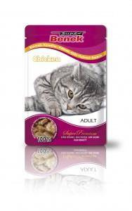 Pełnowartościowa karma dla dorosłych kotów zawierająca smaczne mięsne kęski z dodatkiem kurczaka w aromatycznym sosie. Karma dla kotów Super Benek w saszetkach to linia Super Premium opracowana przez kompetentny zespół specjalistów oraz entuzjastów kotów. Atutem linii pokarmowej Super Benek jest wykorzystanie w procesie produkcyjnym składników tylko najwyższej jakości oraz zastosowanie dodatków sugerowanych przez naukowców jako pożądane na podstawie najnowszych badań. Karma jest bogatym źródłem witamin, soli mineralnych oraz składników odżywczych.
