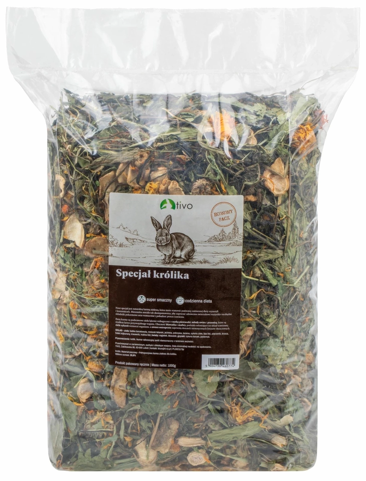 - TIVO Specjał Karma Dla Królika Zioła 2x1kg to aromatyczna mieszanka suszonych ziół, które stanowią naturalne pożywienie królików.