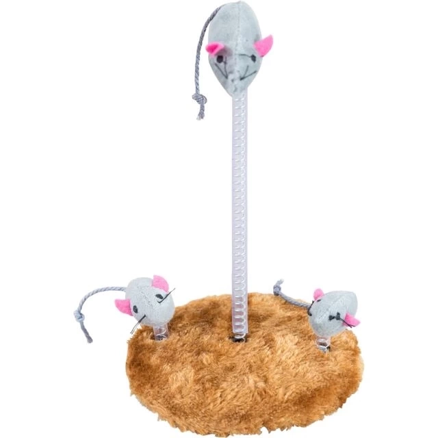 • Myszki przymocowane są do futrzanej płytki na różnych wysokościach za pomocą sprężyn.