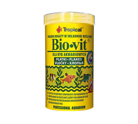 Bio-Vit to roślinny pokarm do codziennego karmienia ryb roślinożernych oraz uzupełniający pokarm dla ryb wszystkożernych. Niezastąpiony w akwariach ogólnych z wielogatunkową obsadą ryb. Optymalnie zbilansowany skład oraz dodatek niezbędnych dla ryb witamin i mikroelementów, w tym pochodzących z zarodków pszennych, zapewniają prawidłowy wzrost i rozwój. Na uwagę zasługuje znaczna zawartość stabilizowanej witaminy C, która między innymi wzmacnia odporność ryb na choroby i przyspiesza gojenie się ran i otarć. Regularne karmienie pokarmem Bio-Vit zmniejsza ryzyko zaparć i stanów zapalnych przewodu pokarmowego, na które podatne są szczególnie ryby roślinożerne, mające długie przewody pokarmowe. O tych właściwościach pokarmu decyduje wysoka zawartość substancji balastowych, w tym błonnika, które pobudzają perystaltykę jelit oraz substancje biologicznie czynne obecne w pokrzywie.