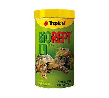 Do najczęściej spotykanych w terrariach żółwi lądowych należą: żółw grecki (Testudo hermanni), śródziemnomorski (Testudo graeca), obrzeżony (Testudo marginata) i stepowy (Testudo horsfieldii). W diecie wymienionych gatunków dominują składniki pochodzenia roślinnego – zwłaszcza trawy, zioła i kwiaty. Specjalnie z myślą o tej grupie przygotowaliśmy Biorept L – wieloskładnikowy pokarm w formie pałeczek do codziennego podawania. Właściwa kompozycja wyselekcjonowanych surowców naturalnych pochodzenia roślinnego pokrywa zapotrzebowanie pokarmowe roślinożernych żółwi. Jego skład jest oparty na trawach, w tym m.in. tymotce łąkowej, która sprawia, iż pokarm jest bardzo smakowity. Dodatek ziela mniszka lekarskiego, babki lancetowatej i kwiatów nagietka zapewnia cenne substancje odżywcze i atrakcyjny aromat. Znakomity smak i aromat pałeczek sprawia, że zwierzęta bardzo chętnie je zjadają. Obniżony poziom białka przy podwyższonym poziomie włókna pokarmowego gwarantuje zdrowy, zrównoważony rozwój kośćca żółwi i prawidłowe formowanie skorupy. Odpowiedni stosunek wapnia do fosforu (2:1), zawartość witamin, mikro- i makroelementów zapobiega rozwojowi krzywicy.