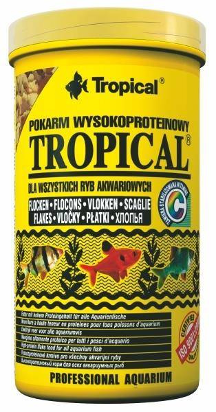 Płatki Tropical Pokarm przeznaczone są do codziennego karmienia ryb wszystkożernych i mięsożernych.
