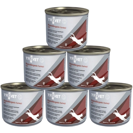 - Trovet TRD Hypollergenic Karma dla Kota Indyk 6x200g to zestaw 6 puszek po 200g karmy dla kotów z alergiami i nietolerancjami pokarmowymi.