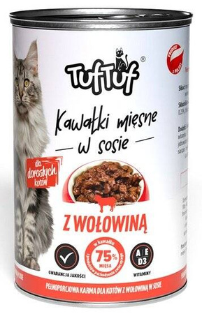 TUF TUF Karma dla kota Kawałki Mięsne z Wołowiną 415g