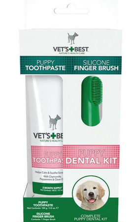 Vets Best Puppy Pasta do zębów dla szczeniąt nie zawiera sztucznych barwników i aromatów. Nie wymaga tradycyjnej szczoteczki do zębów.