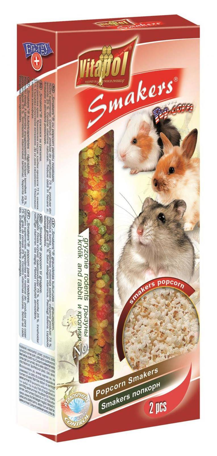 Smakers stanowi urozmaicenie i uzupełnienie diety gryzoni i królików. Pełen smakowitych prażonych chrupek. Obecność prażonej marchwi wzbogaca ten smakołyk w karotenoidy oraz potas, sód, wapń, fosfor, siarka, magnez, żelazo, mangan, miedź, cynk, kobalt, witaminy A, B1, B2, B6, C, E, H, K, PP oraz kwas foliowy
