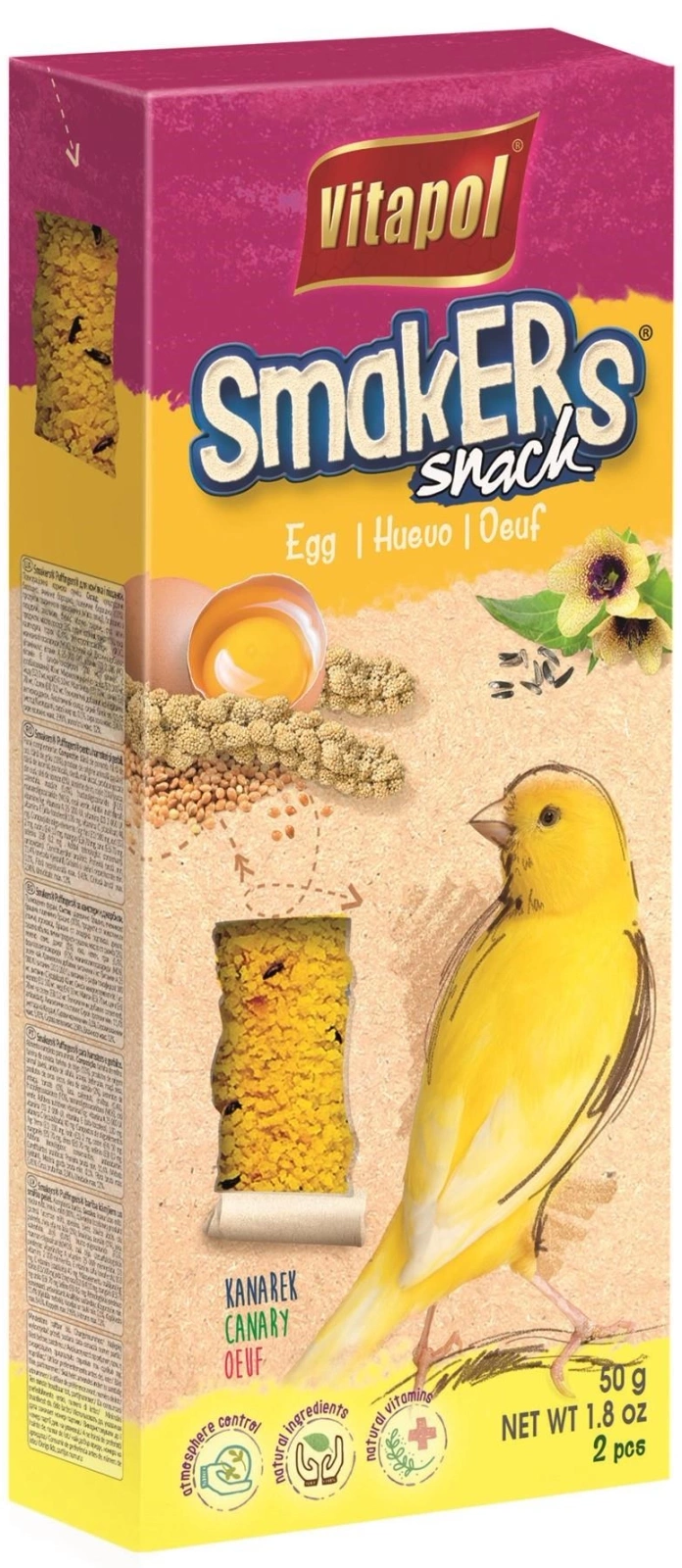Smakers będący zarówno smakołykiem i jak i pożywnym dodatkiem do codziennej diety kanarków. Białko z jaj zapewnia wszystkie niezbędne dla prawidłowego funkcjonowania organizmu aminokwasy. Niezbędny dodatek w żywieniu ptaków przed i w czasie lęgów oraz w okresie pierzenia. Obecność nasion murzynka przeciwdziała zjawisku zatrzymania jaj. Stanowi również idealne uzupełnienie diety ptaków w czasie spoczynku.